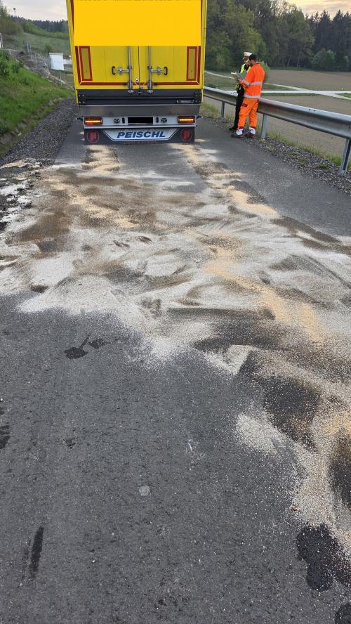 Nachdem der LKW sicher abgestellt wurde, erfolgte das Umpumpen des restlichen Treibstoffs in geeignete Behälter. Der bereits ausgelaufene Diesel wurde mit Bindemittel aufgenommen.